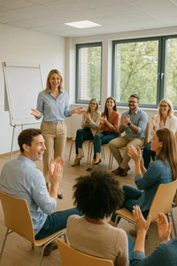 Wie bereits 2024 konnten wir Martina Maciejewski-Hofmann für einen weiteren Methodenworkshop gewinnen. Nach der guten Resonanz im letzten Jahr sollen auch im diesjährigen Workshop Methoden vorgestellt werden, die eine positive Grundstimmung und Lernatmosphäre erzeugen. Dazu zählen unter anderem der Beziehungsaufbau zu den Teilnehmenden ebenso wie die Verbesserung der Konzentration oder die Bestätigung der Selbstwirksamkeit der Teilnehmenden. Ein erfolgreicher „Check-In“ zu Beginn der Veranstaltung und interaktive Lernspiele unterstützen die Lernmotivation und das Lernen.